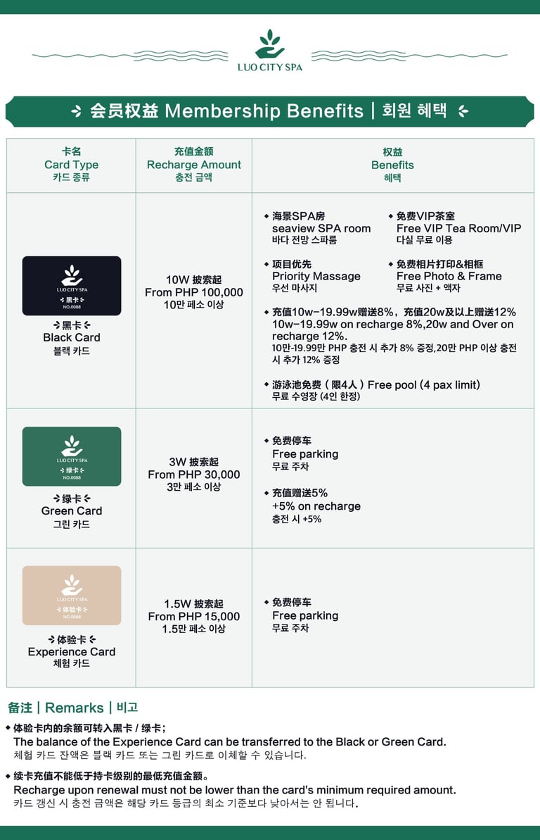 Address: Luo City Spa Club, Esplanade Seaside Terminal Seaside Blvd, MOA Complex Pasay,1300 Metro Manila
