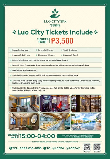 Address: Luo City Spa Club, Esplanade Seaside Terminal Seaside Blvd, MOA Complex Pasay,1300 Metro Manila