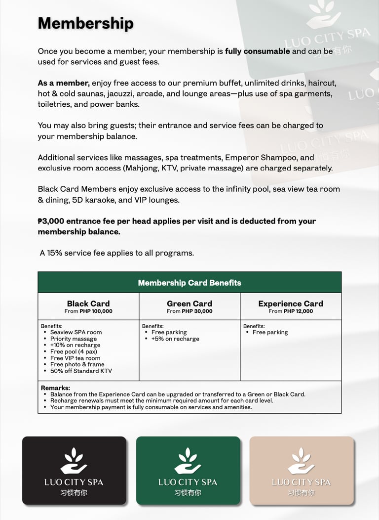 Complete Manila Spa Pricing and Membership Rates