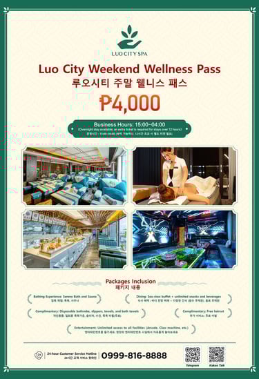 Address: Luo City Spa Club, Esplanade Seaside Terminal Seaside Blvd, MOA Complex Pasay,1300 Metro Manila